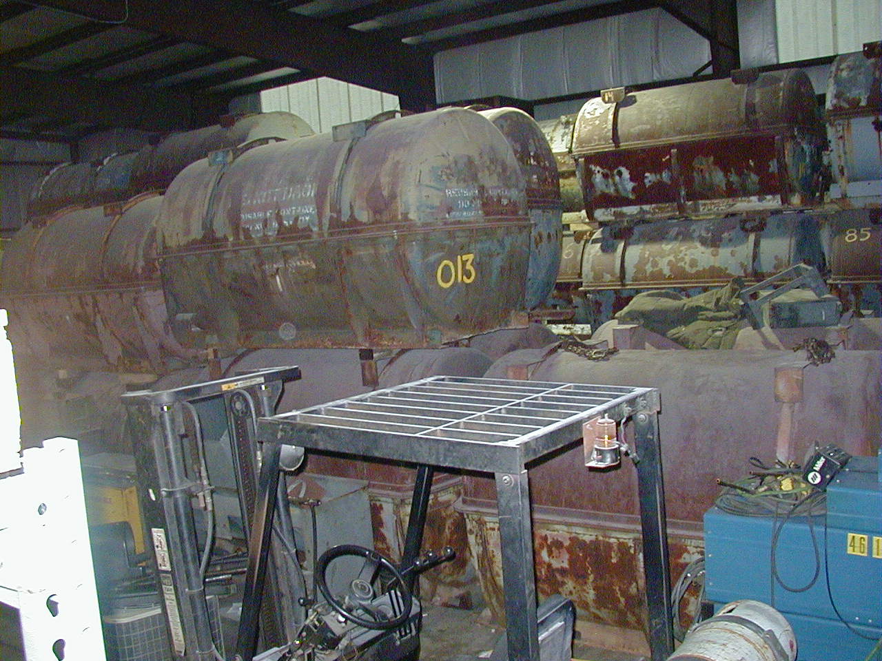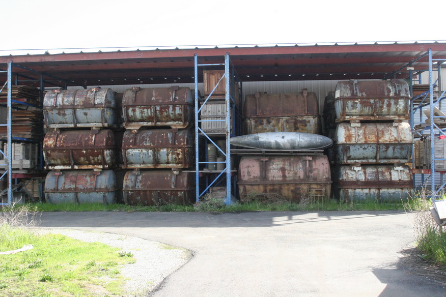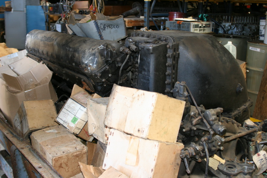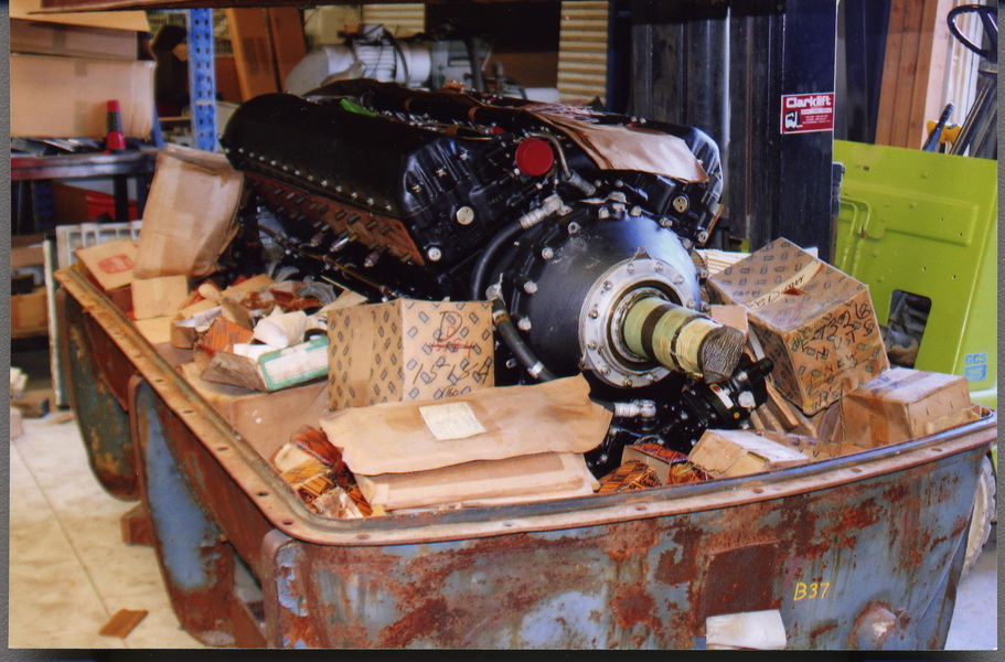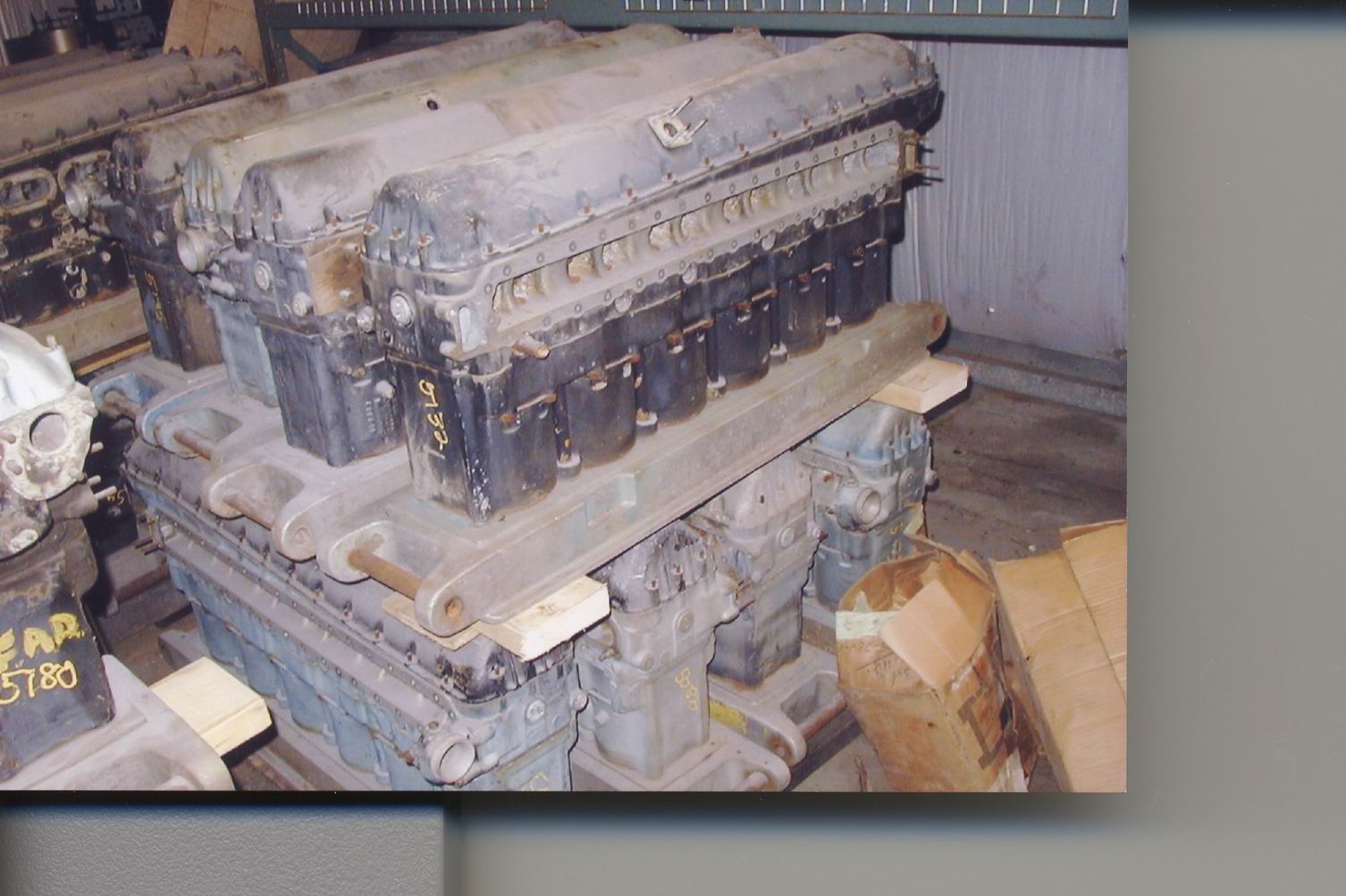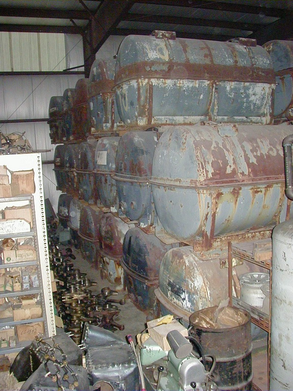 Merlin engine cans stacked up in the shop.